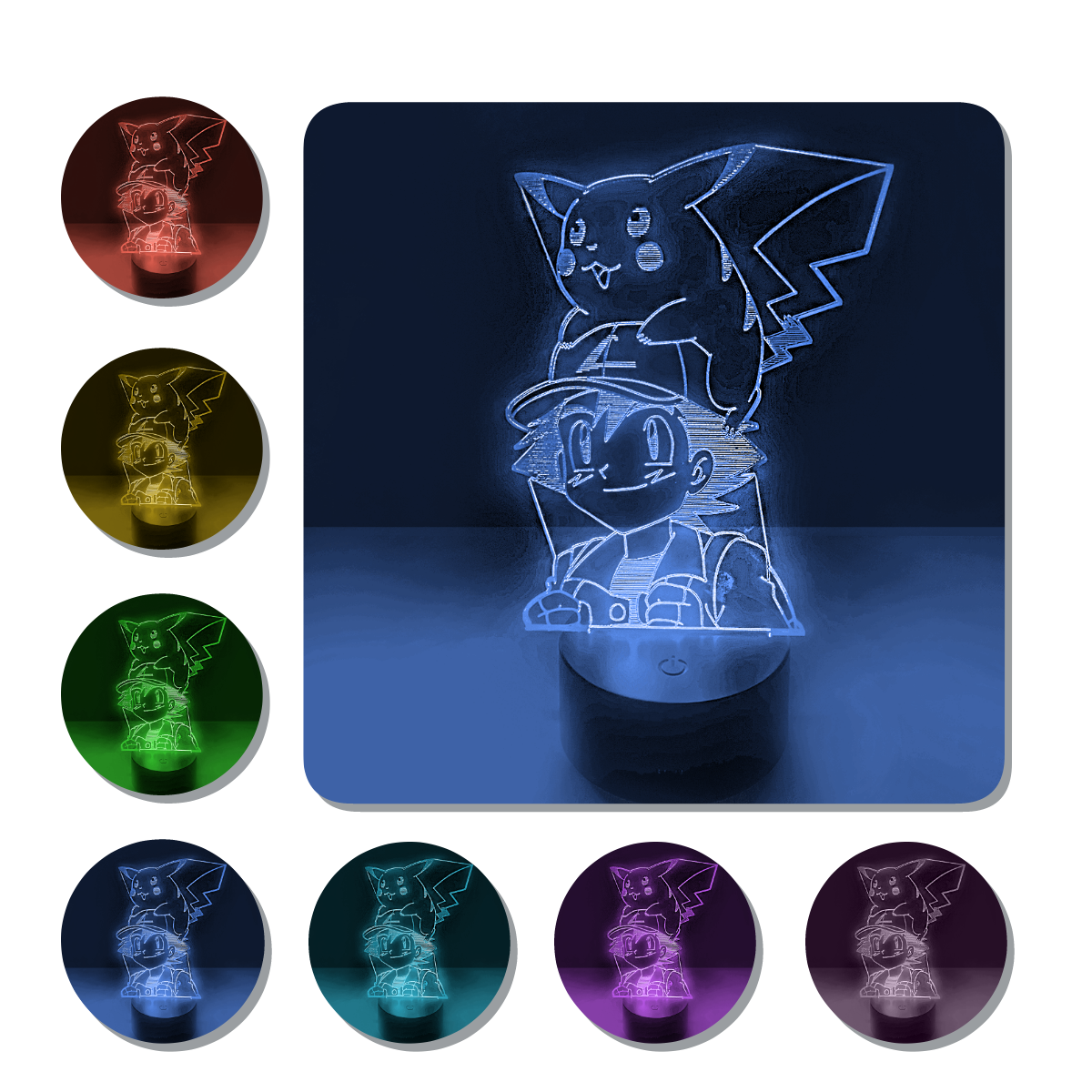 Lámpara 3D Led Ash y Pikachu Pokemon