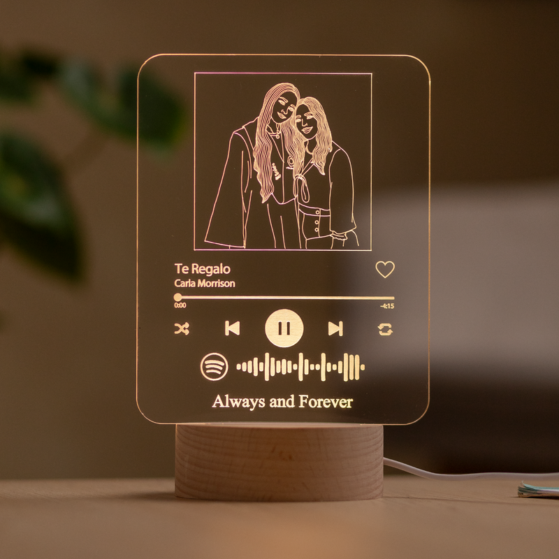 Canciones de Spotify, fotos especiales, frases, todo se puede personalizar en la superficie de la lámpara decorativa, obteniendo un regalo perfecto y único.